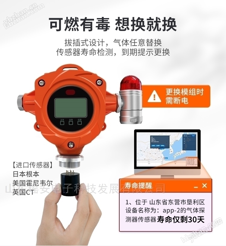 4、壽命自動檢測:傳感器壽命自動檢測,到期提示更換