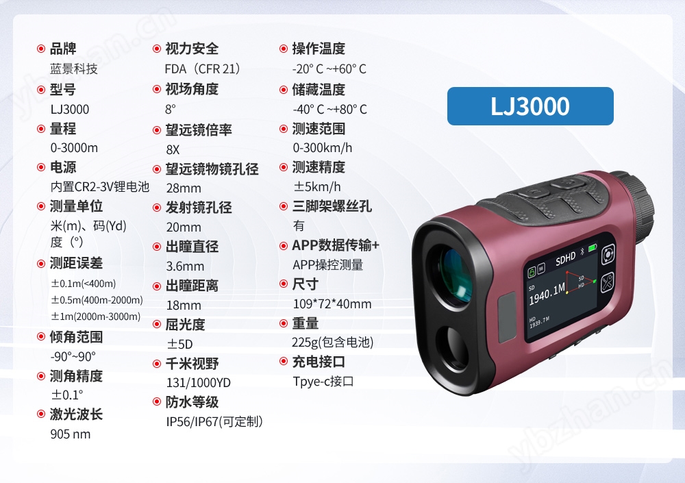 高精度測(cè)距儀水平距離/直線距離+垂直距+兩點(diǎn)測(cè)高+三點(diǎn)測(cè)高+空間任意兩點(diǎn)測(cè)量+面積體積測(cè)量+速度測(cè)量+溫度檢測(cè)+藍(lán)牙+APP+數(shù)據(jù)儲(chǔ)存。