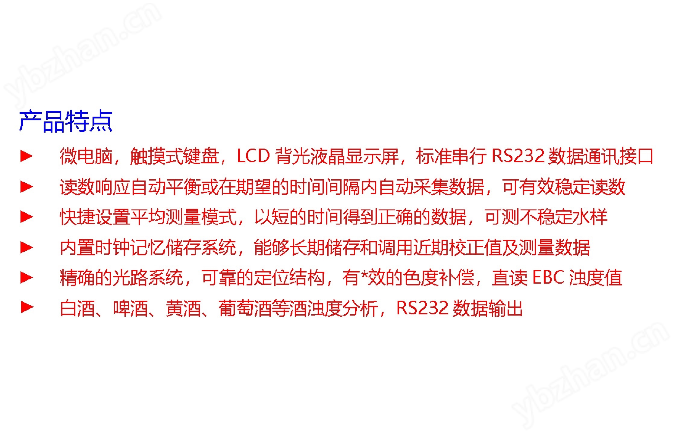 5.的光路系統,的定位結構,有*效的色度補償,直讀EBC濁度值